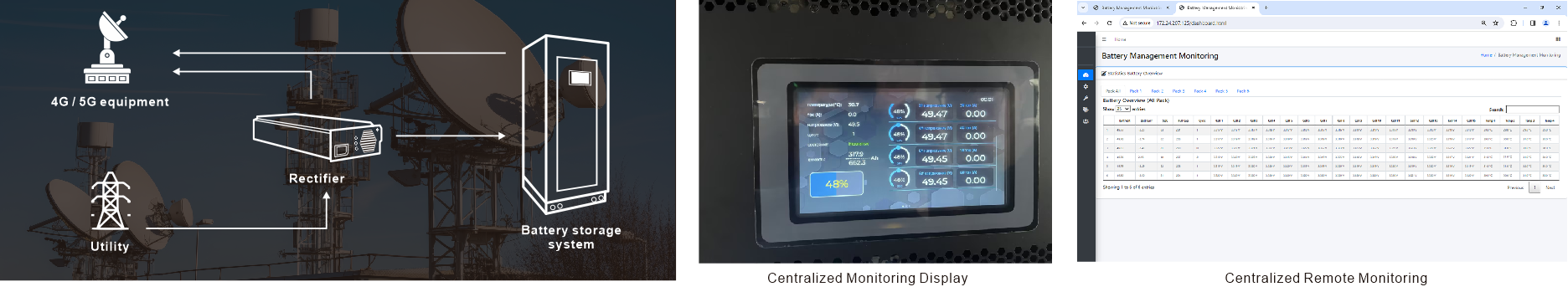 في هذا المشروع، قمنا بتوفير 6 قطع من وحدات بطارية الليثيوم 48V600Ah (EV48600-T) متصلة بالتوازي والتي يمكنها توفير مصدر طاقة احتياطي لمدة 60 دقيقة لنظام 25 كيلو وات، مما يضمن إمكانية صيانة نظام الاتصالات دون إيقاف التشغيل عند فشل مصدر الطاقة الرئيسي، وتجنب كمية كبيرة من الخسائر الاقتصادية وكسب الوقت لإصلاح الطاقة.
