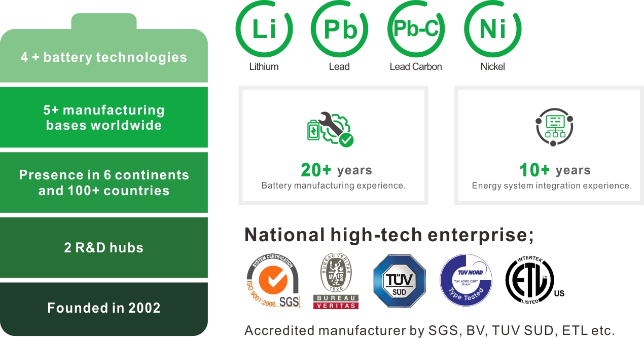 تعد EverExceed شركة رائدة عالميًا في توفير أنظمة تخزين الطاقة مع أكثر من 20 عامًا من الخبرة في تصنيع البطاريات؛