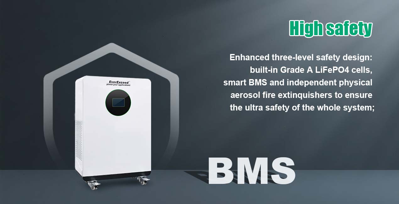 بطارية LiFePO₄ عالية الأمان مزودة بنظام إدارة بطارية ذكي ونظام إخماد حرائق مدمج بالرذاذ - مصممة لتخزين الطاقة المنزلية بشكل موثوق.