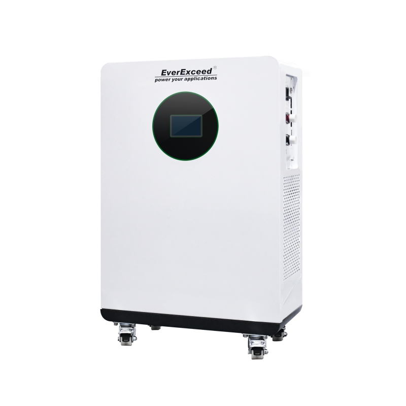 بطارية ليثيوم فوسفات الحديد عالية الأمان 51.2 فولت 16 كيلو واط ساعة، مثبتة على الأرض، مزودة بنظام إدارة البطارية وعجلات لتوفير الطاقة الاحتياطية للمنزل