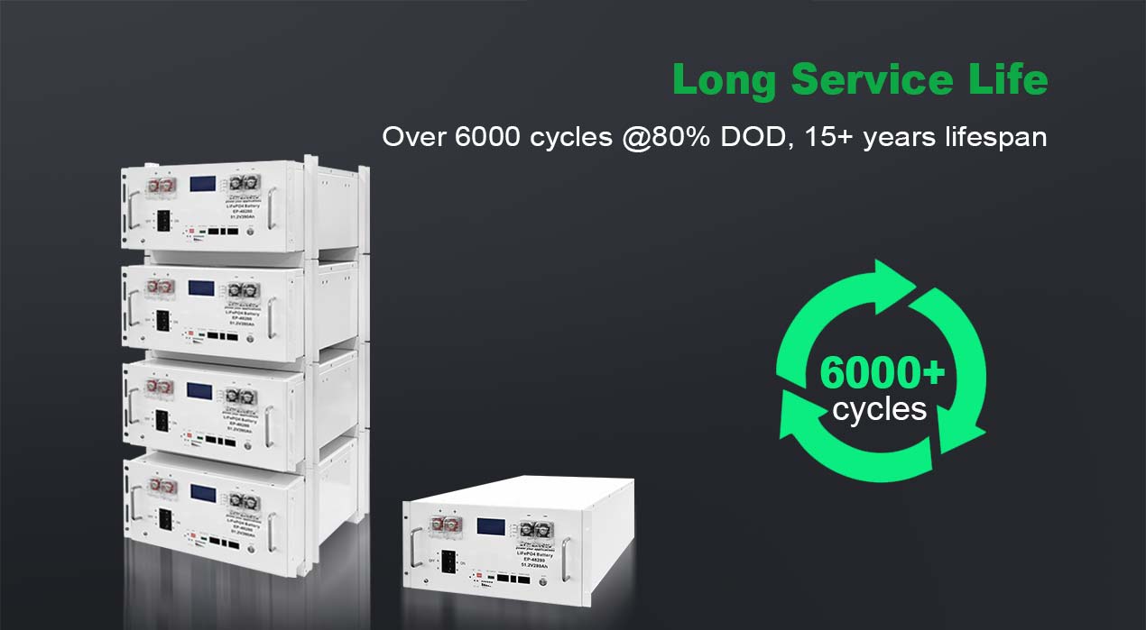 خلايا ليثيوم فوسفات الحديد من الدرجة الأولى، أكثر من 6000 دورة شحن، عمر افتراضي يصل إلى 15 عامًا. مزودة بمطفأة حريق مدمجة لمزيد من الأمان. معتمدة وصديقة للبيئة.