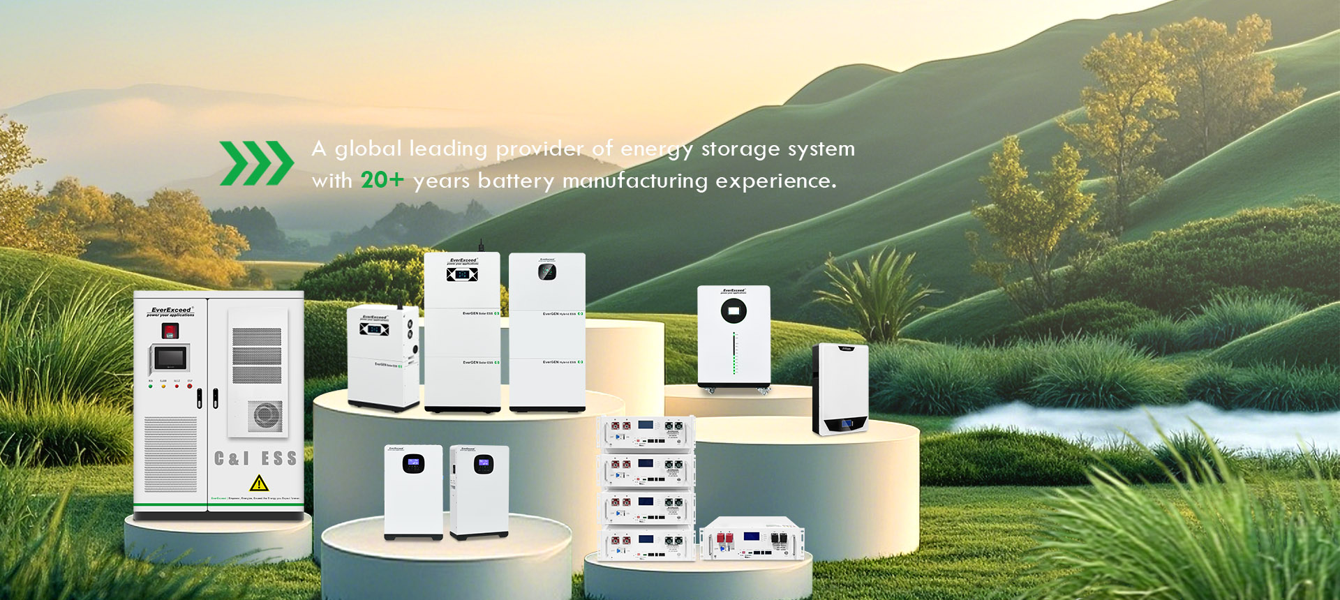 تقوم شركة EverExceed بتصميم وتطوير أنظمة تخزين الطاقة المتصلة بالشبكة وخارجها والهجينة والتي تعد عبارة عن محفظة تخزين طاقة رقمية بالكامل وتزيد الكفاءة من خلال الحلول التي تم إنشاؤها في المصنع والمختبرة مسبقًا والتي تحقق مراقبة الجودة الشاملة لأعلى مستوى من الأمان. يمكن نشر حلول تخزين الطاقة من EverExceed مباشرة إلى موقع العميل، مما يؤدي إلى تثبيت أسرع، ووقت تنفيذ أقصر للمشروع، وتوفير أعلى للعملاء. يحقق تصميمها الثوري المتطور كثافة طاقة رائدة في السوق، وسهولة التركيب، مما يمكّن المالكين من الاستفادة بسرعة من فوائد الطاقة الموثوقة والنظيفة.