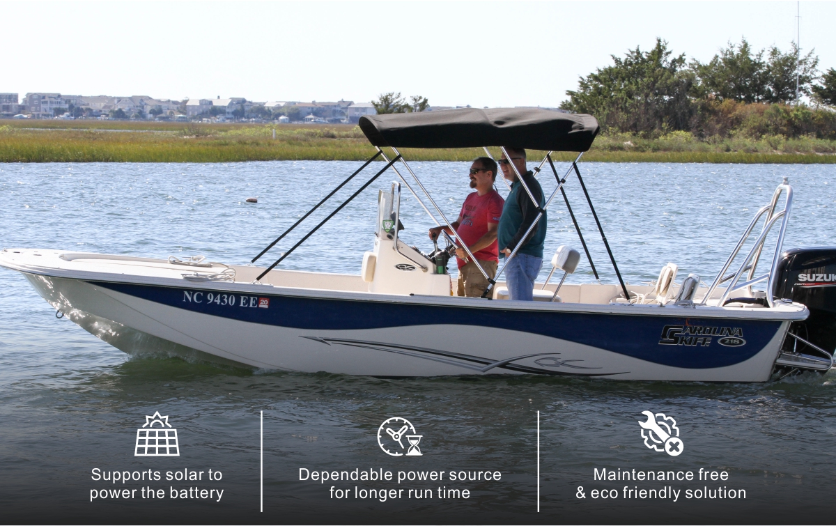 | يوفر 100% من الطاقة القابلة للاستخدام، لذلك بالنسبة للرحلات الطويلة يمكنك تفريغ البطارية أكثر من بطاريات الرصاص الحمضية التقليدية، مما يزيد من كفاءة رحلتك الطويلة. |